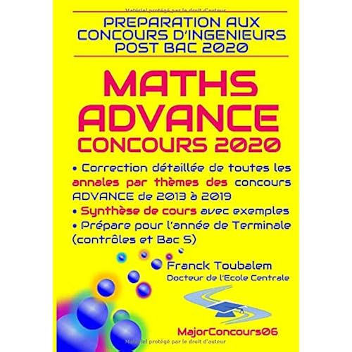 Prparation aux concours postbac ADVANCE 2020 MATHS Correction dtaille des Annales des concours Advance de 2013 2019 et synthse des cours de TS avec exemples