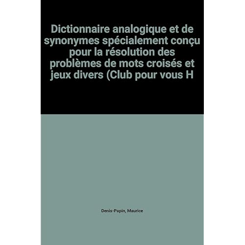 Dictionnaire analogique et de synonymes spcialement conu pour la rsolution des problmes de mots croiss et jeux divers Club pour vous Hachette