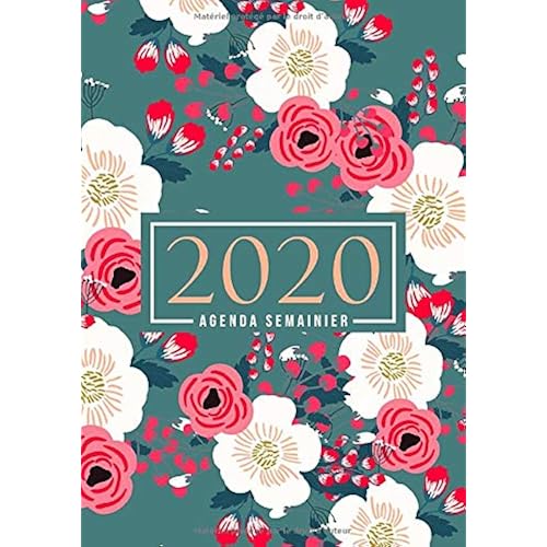 Descriptions Agenda semainier 2020 Du 1er janvier 2020 au 31 dcembre 2020 aperu hebdomadaire et mensuel journal planificateur amp organiseur Fleurs roses et blanches sur vert 0237 Francais: