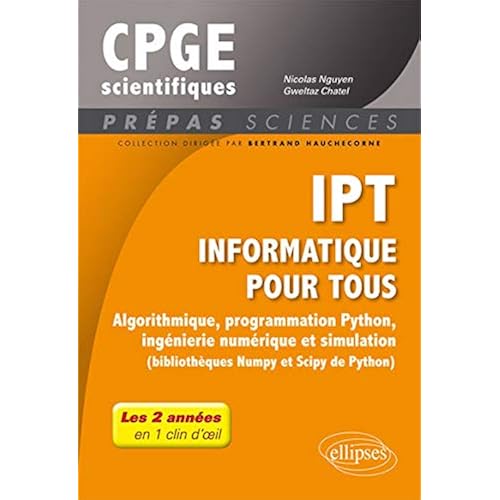 Descriptions IPT Informatique pour tous Algorithmique programmation Python ingnierie numrique et simulation bibliothques Numpy et Scipy de Python Tout de prpas scientifiques en 1 clin doeil Francais: